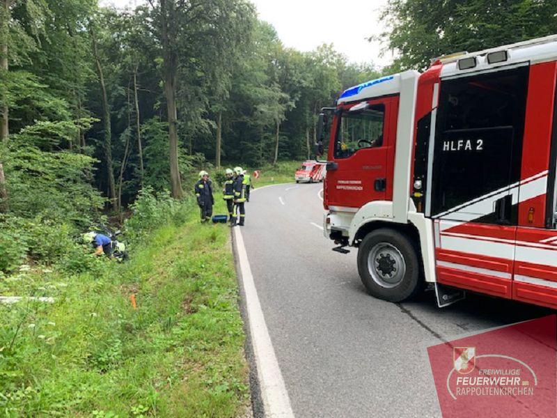 Kurz vor 16 Uhr ereignete sich ein Verkehrsunfall auf der Landesstraße 123 zwischen Rappoltenkirchen und der Tirolersiedlung bei Streckenkilometer 9,2.