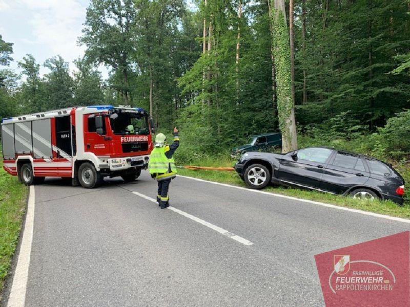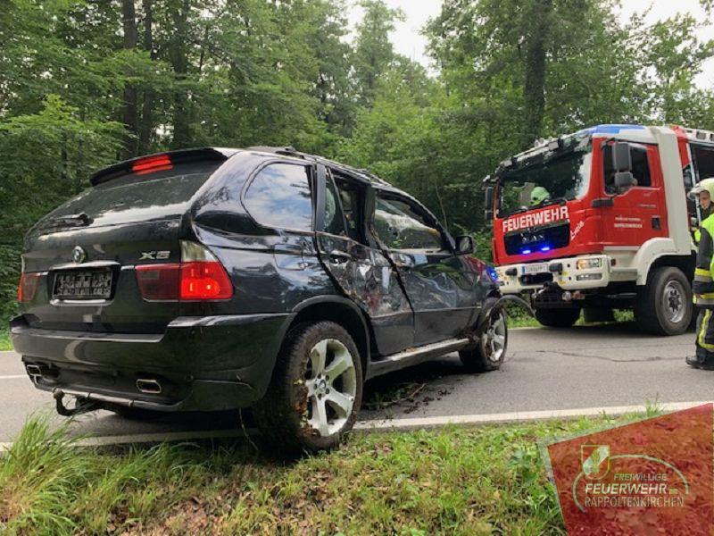 In letzter Zeit kam es in diesem Bereich vermehrt zu teils schweren Verkehrsunfällen. Diesmal kam der Lenker eines BMW X5 aus bisher ungeklärter Ursache von der Fahrbahn ab. Das Fahrzeug wurde in den Straßengraben katapultiert und schlitterte mit der Beifahrerseite gegen einen Baumstamm, wodurch der PKW schwer beschädigt wurde.