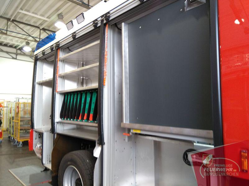 Die mitgereiste Mannschaft konnte sich vor Ort ein Bild des neuen Einsatzfahrzeuges machen, welches im Mai 2019 zugestellt werden soll. Es wurde mit den Mitarbeitern der Fa. ROSENBAUER festgelegt, welche Ausrüstungsgegenstände in den verschiedensten Stauräumen Platz finden sollen. Ebenso konnte die neue Ausrüstung (z.B.: Akku-Bergeschere) in Augenschein genommen werden.