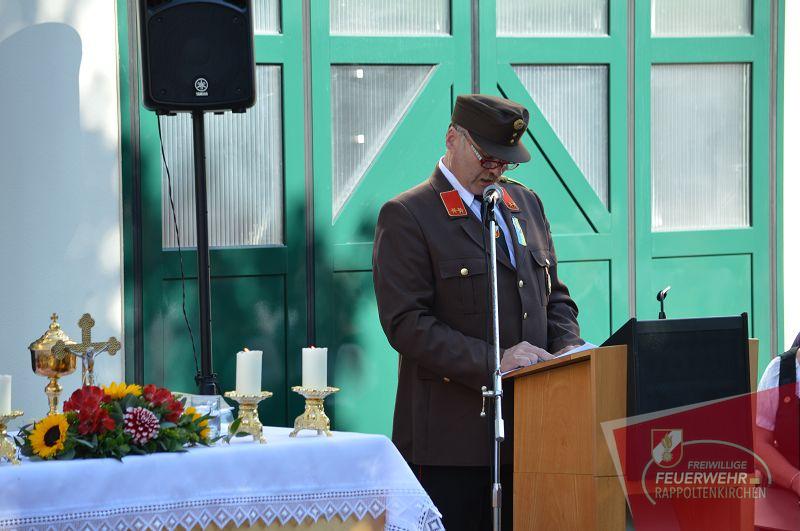 Kommandant Johann Reiter bedankte sich in seiner Festrede für die Unterstützung von Land NÖ und der Marktgemeinde Sieghartskirchen bzw. bei allen die die FF-Rappoltenkirchen finanziell unterstützen.