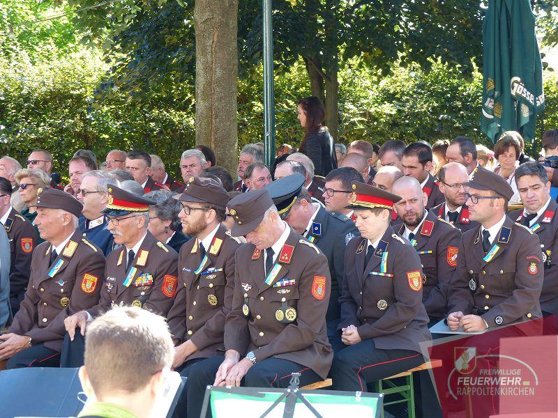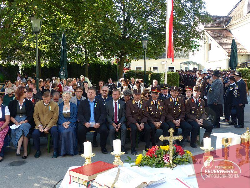 Zahlreiche Ehrengäste waren vertreten: Bezirksfeuerwehrkommandant Herbert Obermaisser, Abschnittskommandant Leopold Mayer und Stellvertreter Dominik Rauscher, Altbürgermeister Josef Ungler, Patin Lucia und Dr. Walter Wadsak, Pater Stanislav, Nationalrat Johann Höfinger, Bundesrat Andreas Spanring, Bürgermeisterin Josefa Geiger, Vize Johannes Albrecht, GGR Susanne Arnold, GGR Josef Roch und Postenkommandant Christian Treitl.