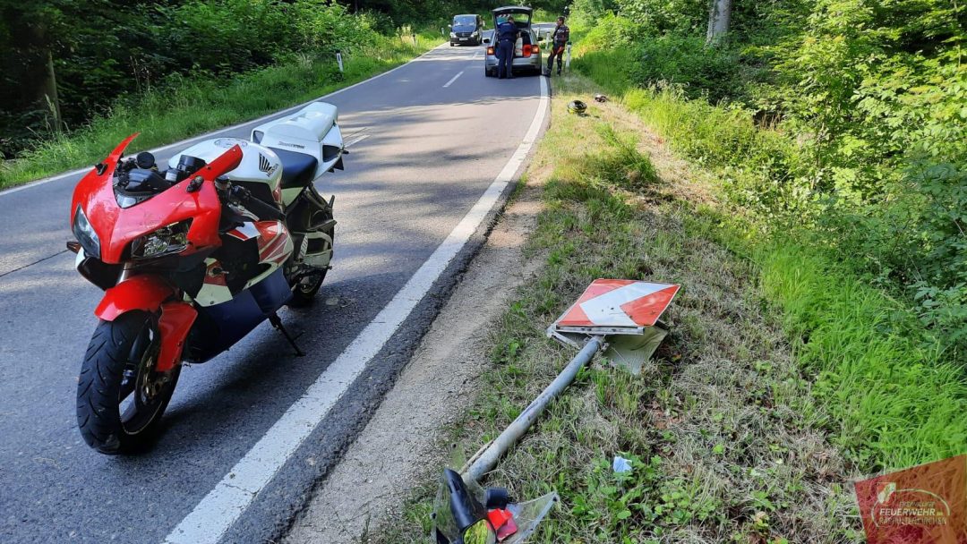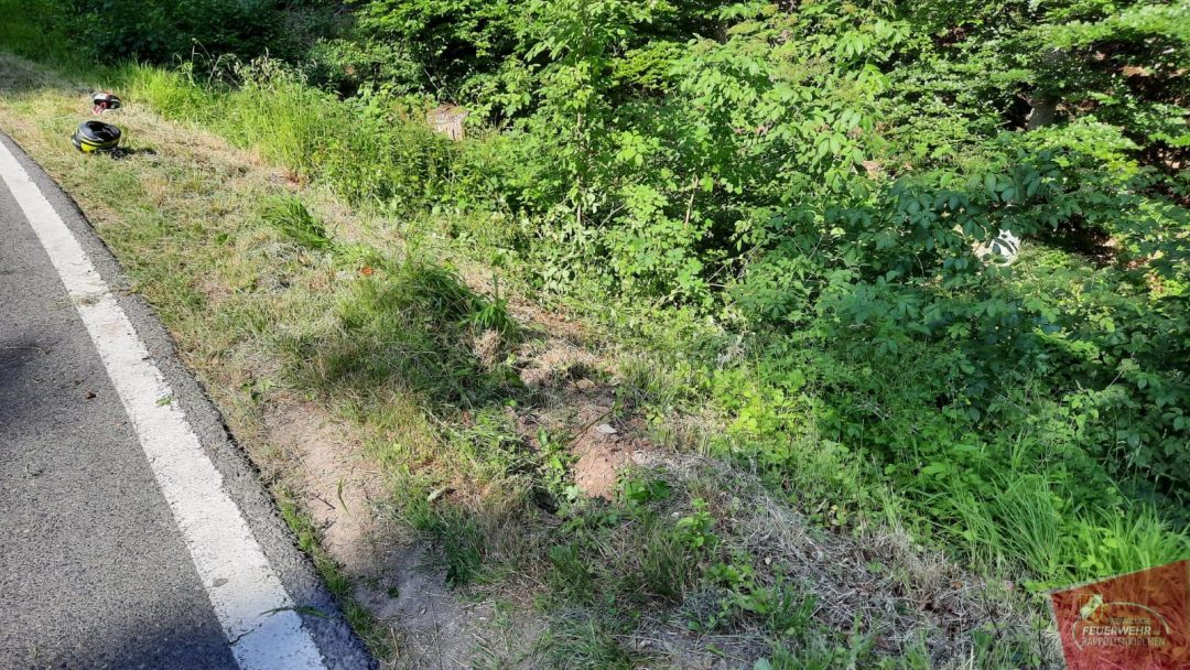 In einer scharfen Linkskurve stürzte ein Motorradfahrer durch unbekannter Ursache in einen Graben. Der Fahrzeuglenker hatte einen leichten Schock, war aber unverletzt. Nachkommende Verkehrsteilnehmer setzten die Rettungskette in Gang.