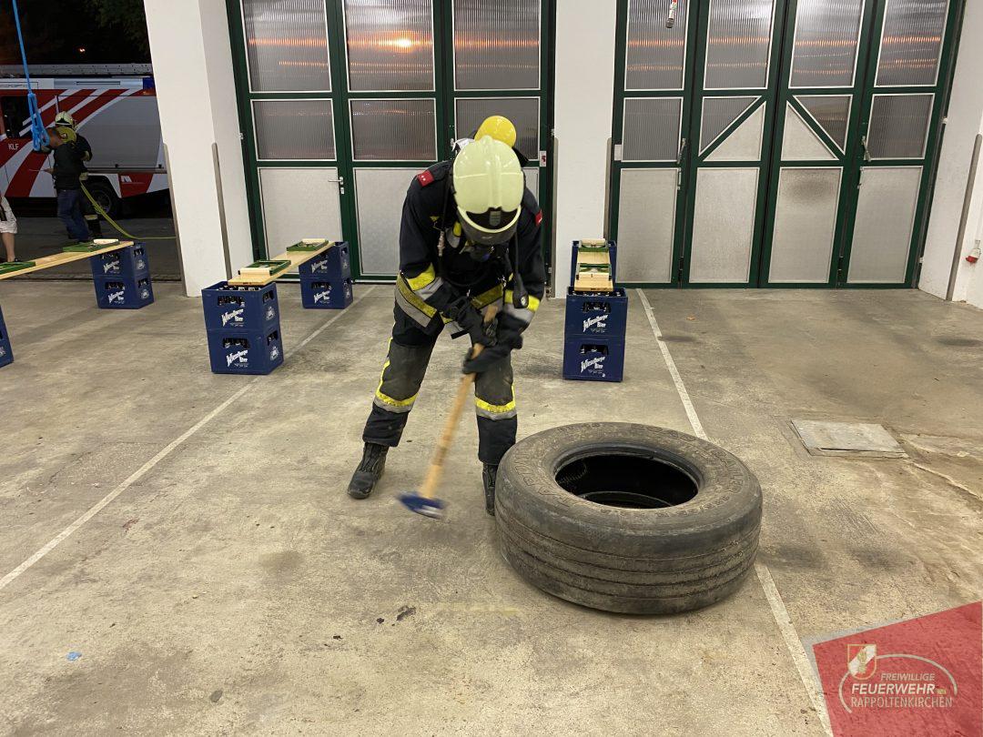 - Finnentest: 5 Stationen die mit vollständiger Einsatzbekleidung und angelegtem AS-Gerät innerhalb eines Zeitlimits bewältigt werden müssen (Gehen mit und ohne Kanistern, Stiegen steigen, Bewegen eines liegenden LKW-Reifens mittels Hämmern, Unterkriechen und Übersteigen von Hindernissen sowie C-Druckschlauch einfach rollen).