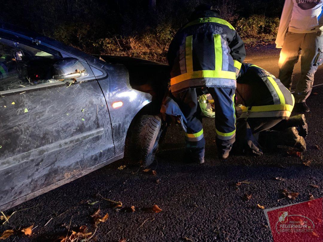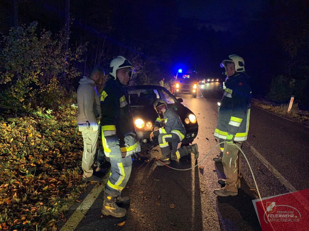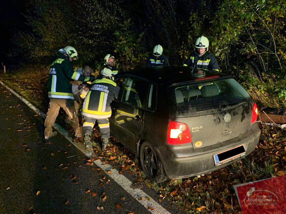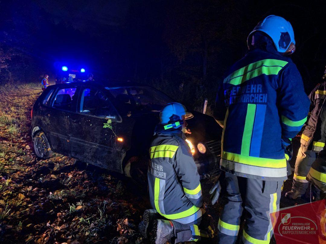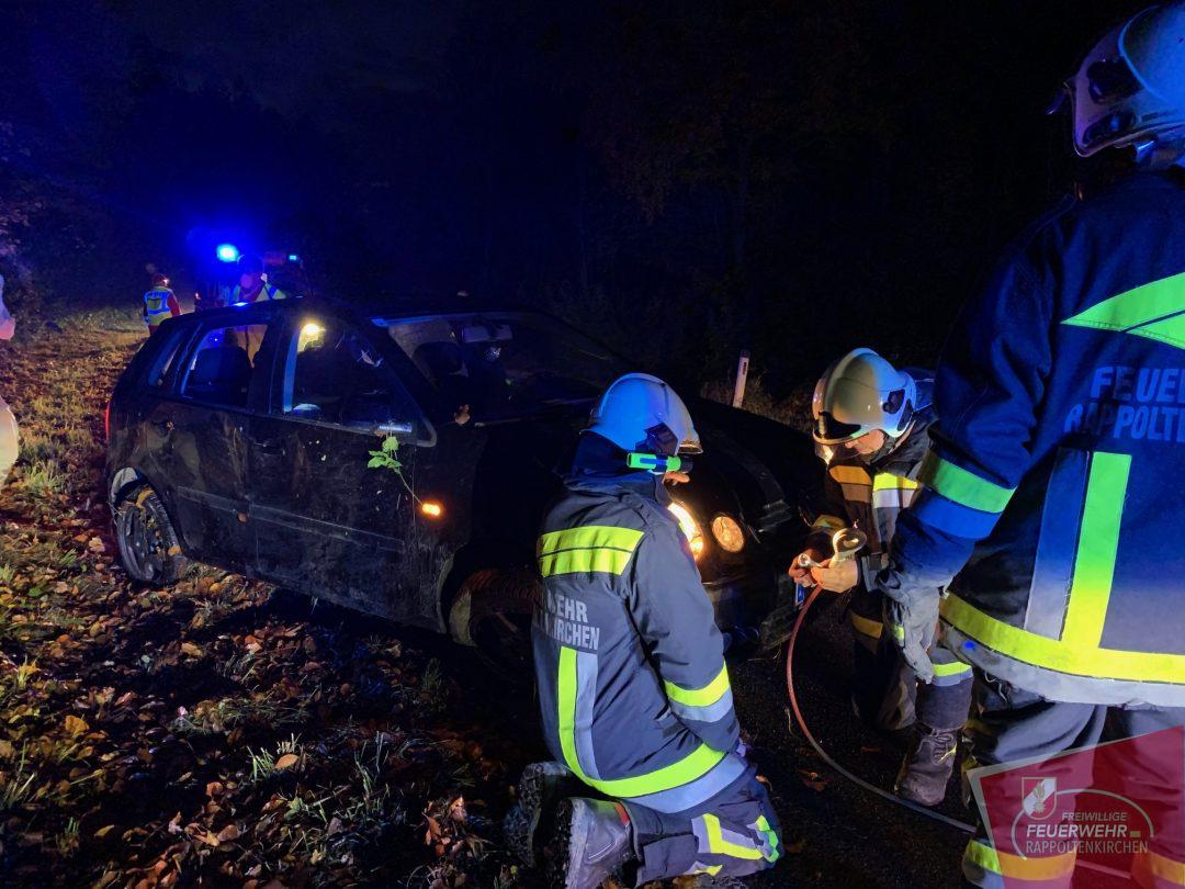 Kurz nach 17 Uhr wurde die Mannschaft der FF-Rappoltenkirchen zu einem Fahrzeugüberschlag auf die Landesstraße 123 Richtung Tirolersiedlung alarmiert. Eine Lenkerin kam auf der nassen Fahrbahn in Fahrrrichtung Rappoltenkirchen ins Schleudern.