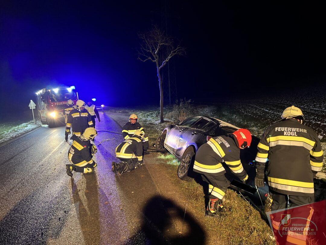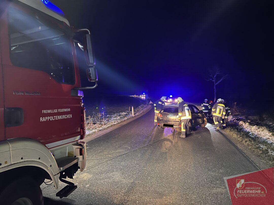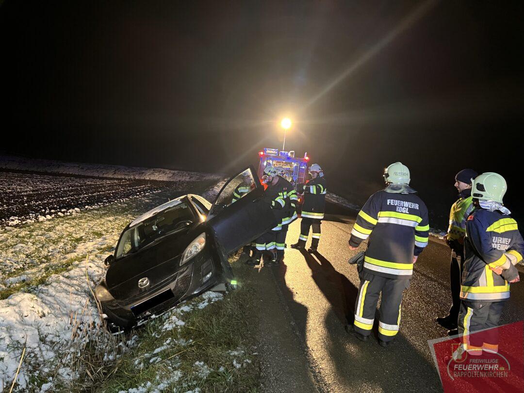 Gegen 21 Uhr verunfallte ein PKW auf der Landesstraße zwischen Wimmersdorf und Kogl. Das Fahrzeug kam von der Fahrbahn ab, touchierte einen Leitpflock und landete in der Folge im Straßengraben. Der beschädigte PKW wurde mit der Seilwinde aus dem Straßengraben gezogen und im Anschluss abgestellt. Im Einsatz standen die FF Rappoltenkirchen, FF Kogl und die Polizeiinspektion Sieghartskirchen.