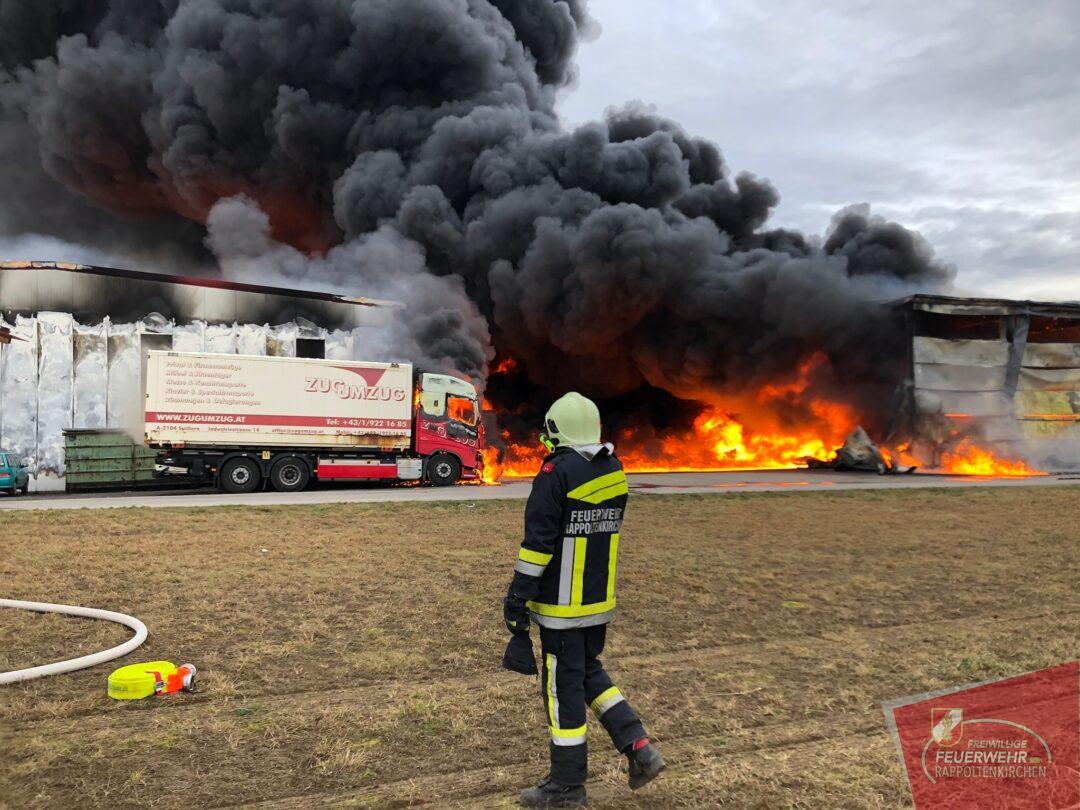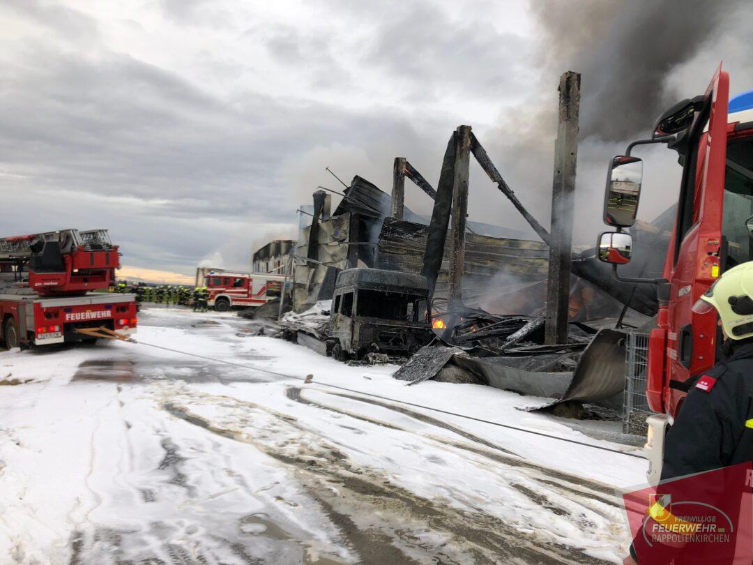 In einer Lagerhalle in Michelhausen (Bezirk Tulln) ist am Freitag ein Brand ausgebrochen. 350 Helferinnen und Helfer der Feuerwehr waren im Einsatz. Die Halle wurde komplett zerstört.
