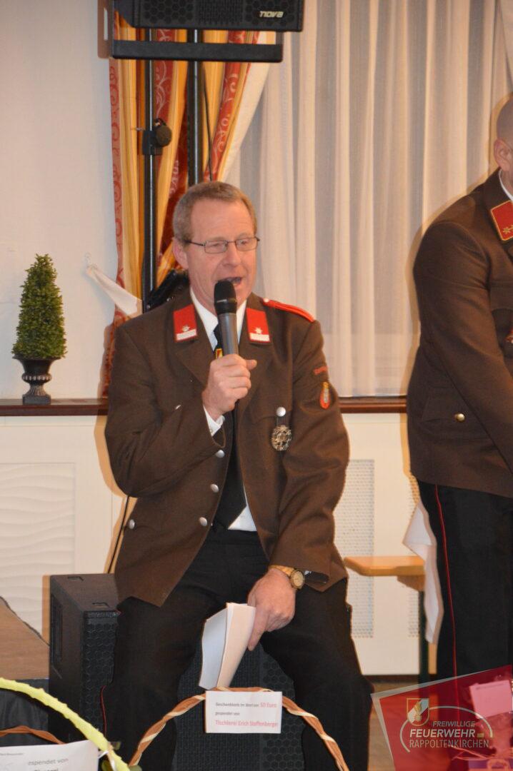 Kommandant Robert Lackenbauer dankte in seiner Ansprache allen Gästen, Freunden, Sponsoren und natürlich allen Feuerwehrmitgliedern für die Unterstützung und Organisation des Balles.