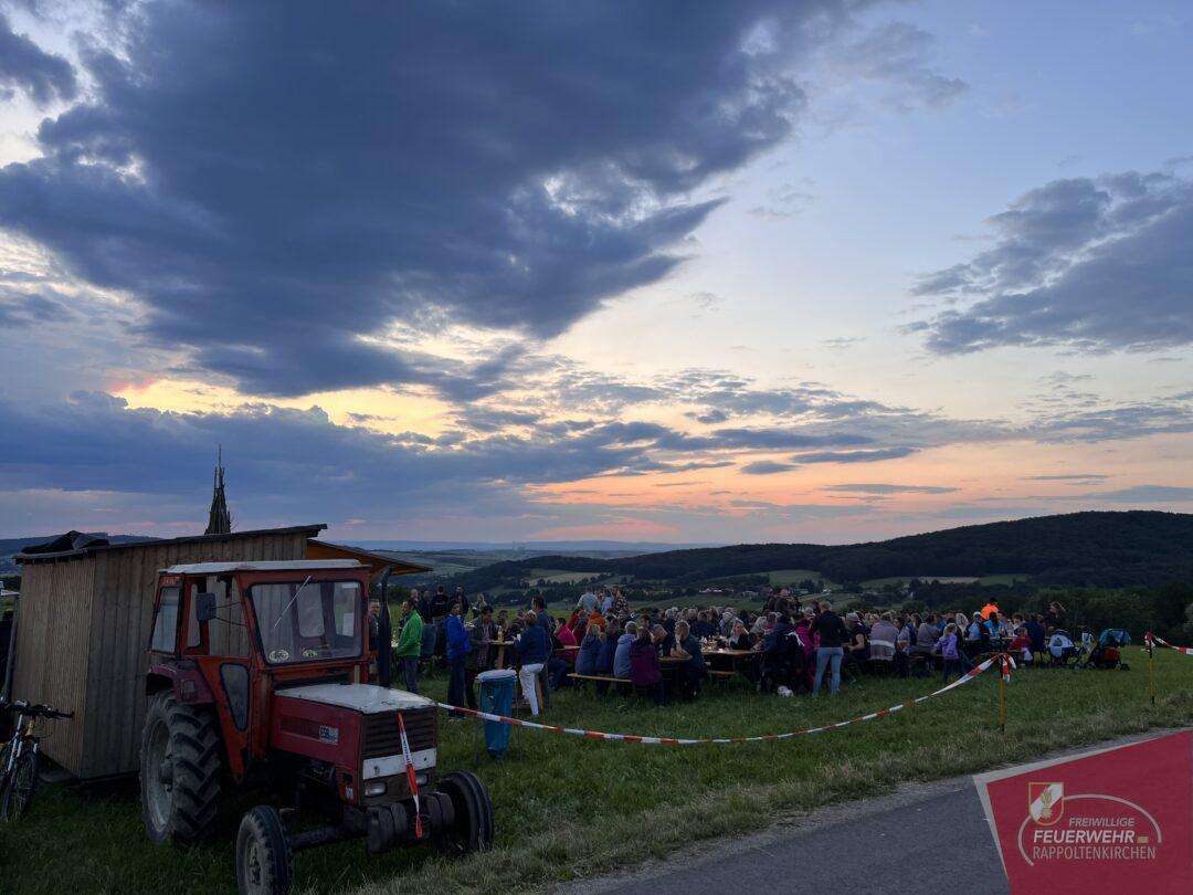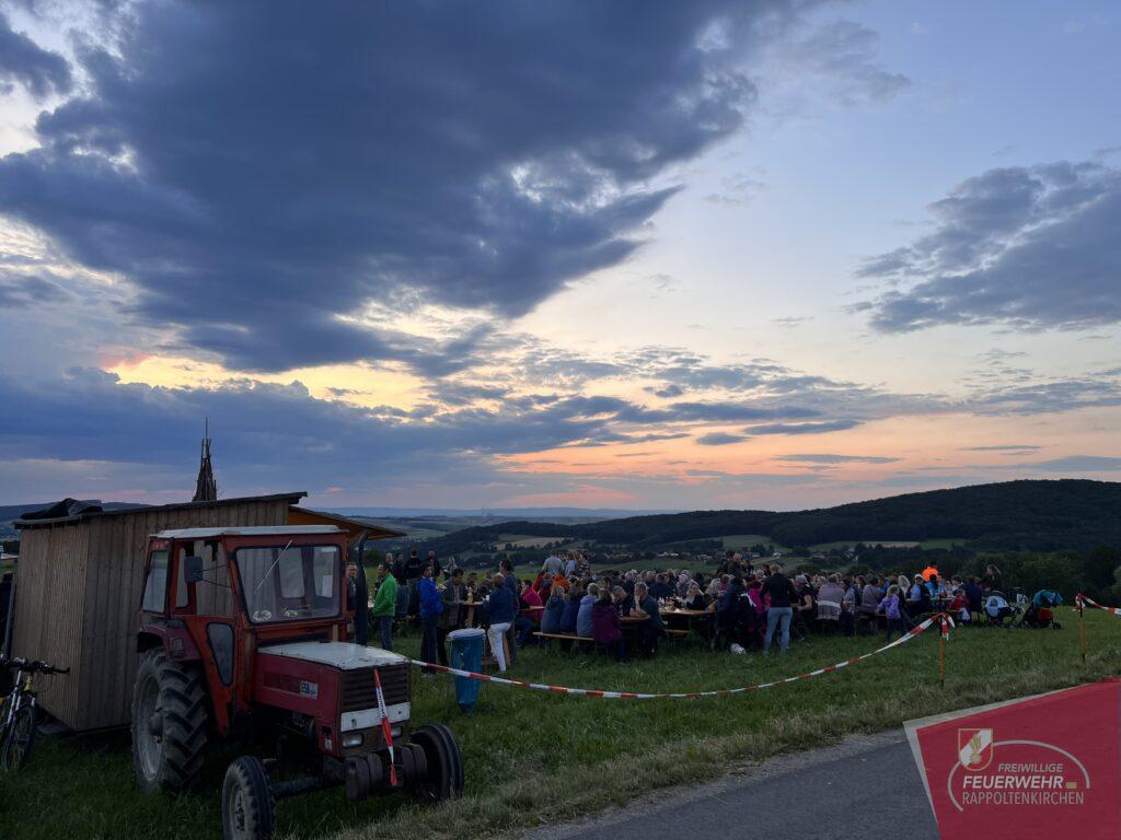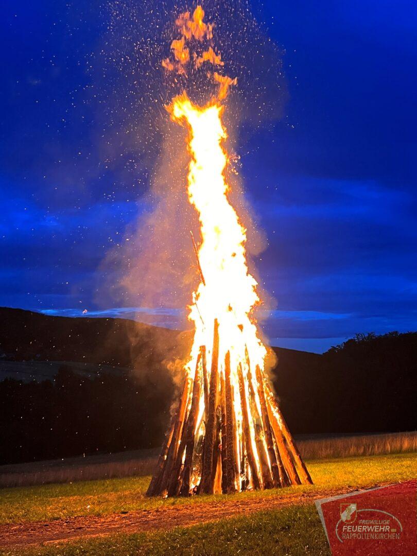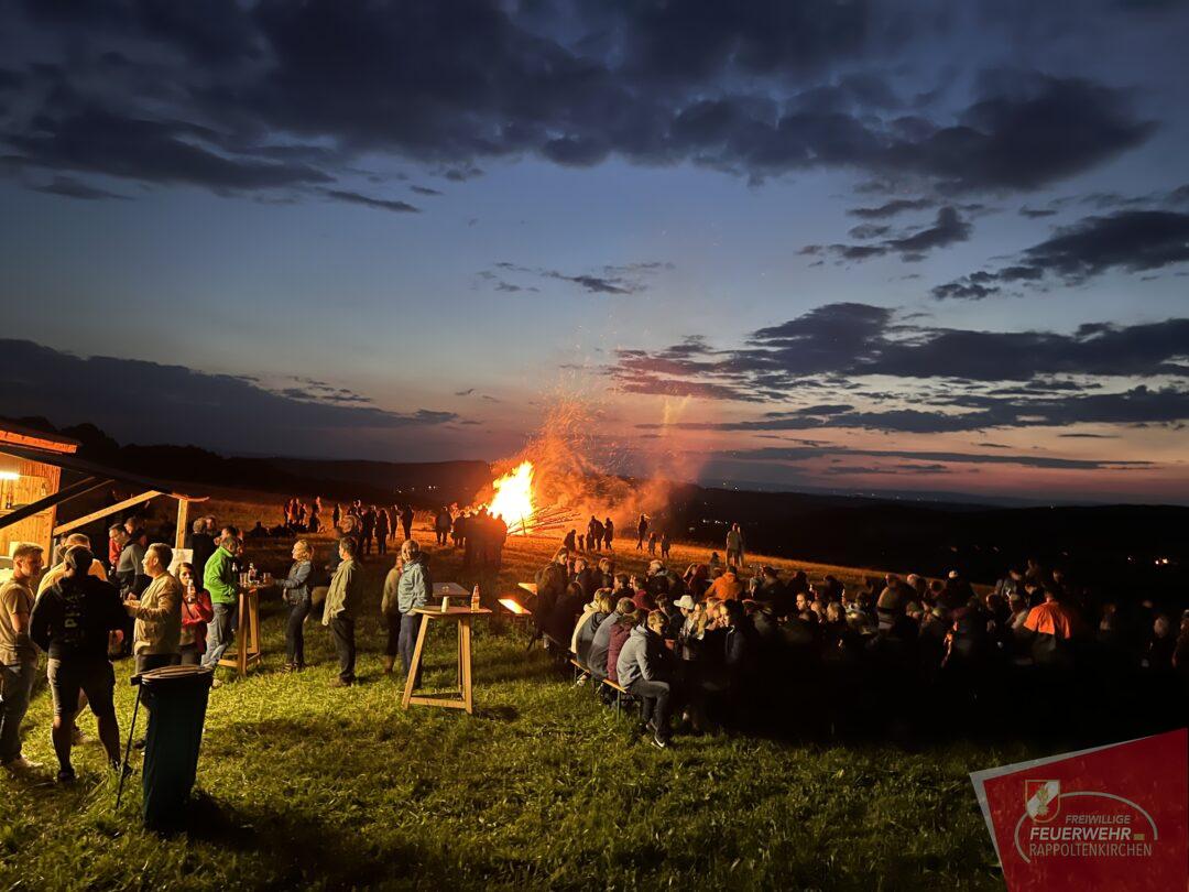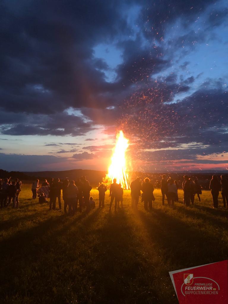 Auch heuer wurde wieder das traditionelle Sonnwendfeuer der Freiwilligen Feuerwehr Rappoltenkirchen abgehalten. Neu hingegen war jedoch der Austragungsort. Zum ersten Mal wurde der schön geschlichtete Holzkegel in Kracking entzunden. Viele Gäste verfolgten hautnah das alljährliche Spektakel und feierten gemeinsam die Sonnenwende. Der Austragungsort auf der Anhöhe in Kracking ermöglichte allen Gästen ein herrliches Panorama bis weit über den Wagram und bis ins Weinviertel hinaus. In gewohnter Form wurden die Besucher mit Speisen und Getränken seitens der Feuerwehr bestens versorgt.