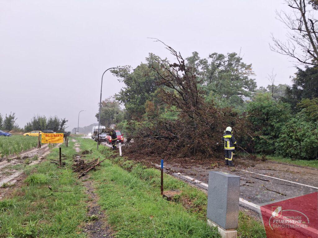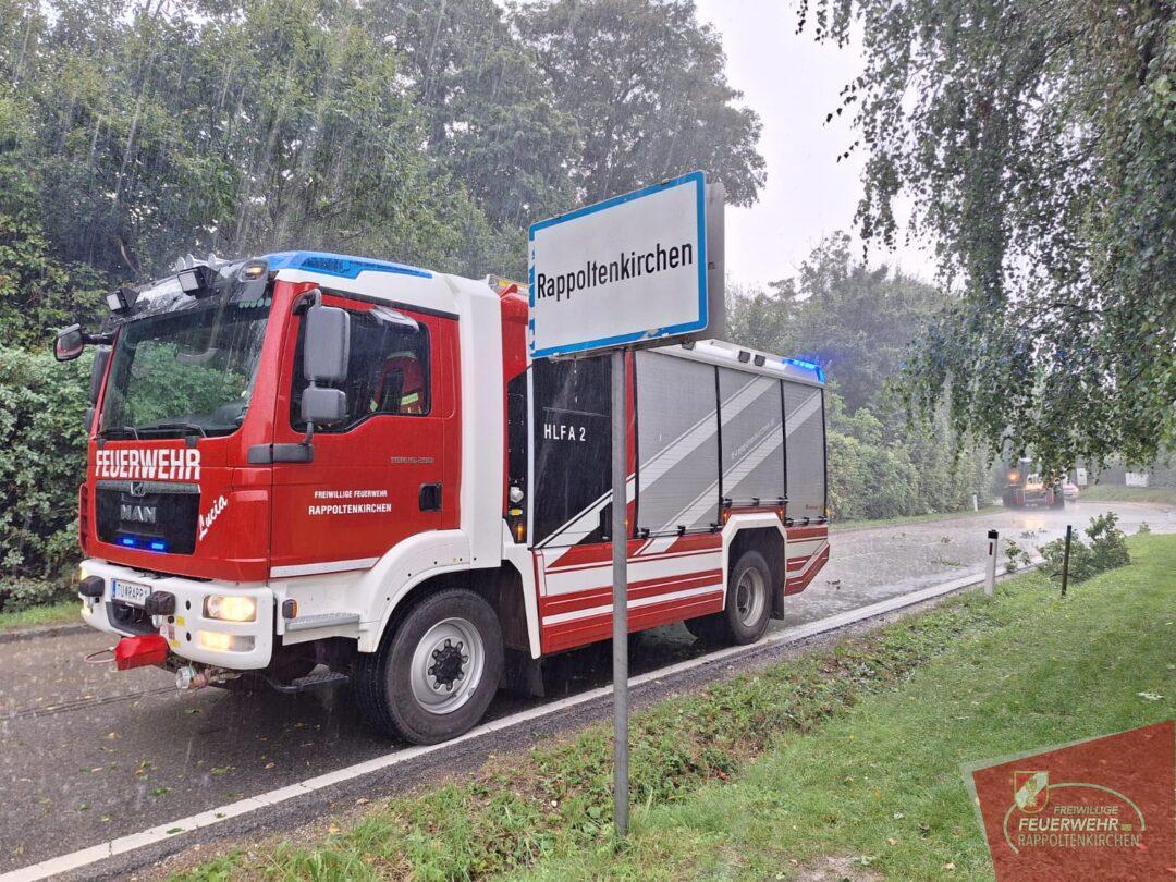Am Mittwochnachmittag, 16. August musste die Einsatzmannschaft der Freiwilligen Feuerwehr Rappoltenkirchen um 16:47 Uhr zu einem Sturmschaden „Baum über Straße“ ausrücken.