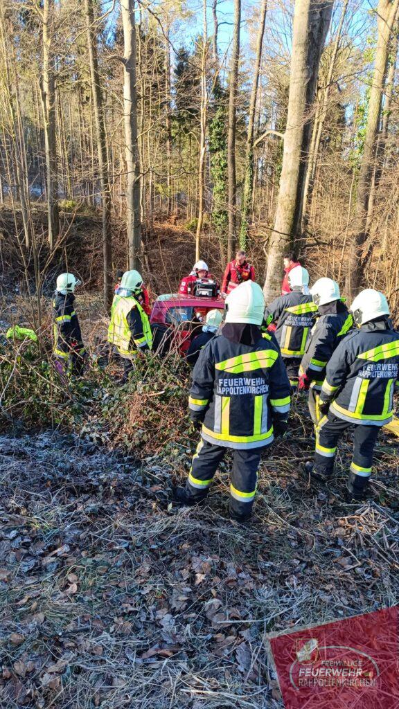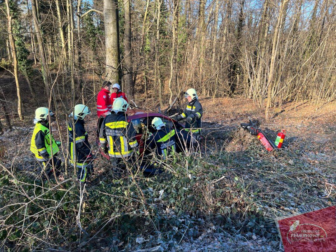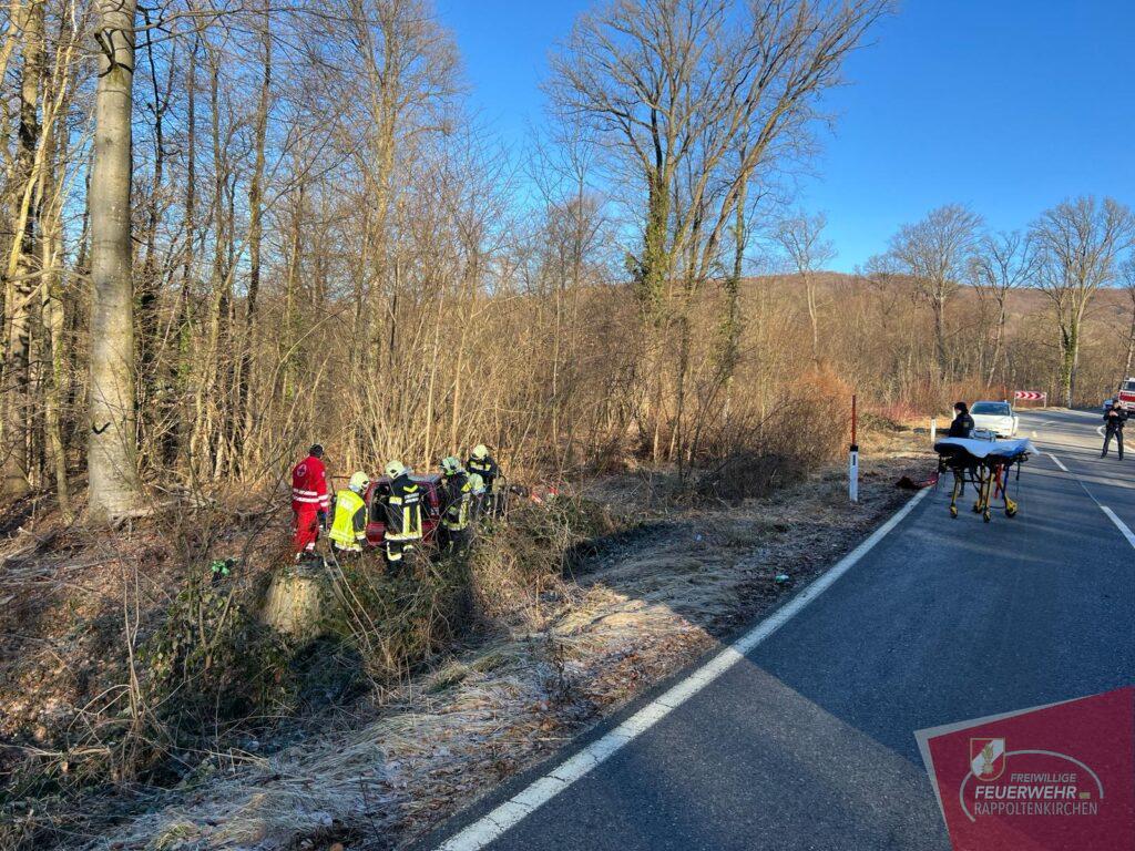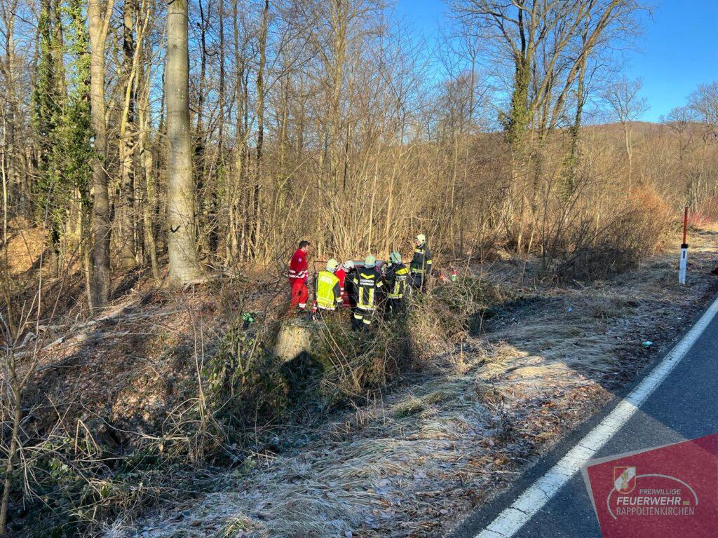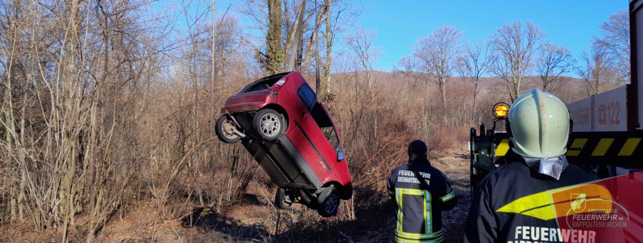 Heute wurden wir um 10:00 zu einer T2- Menschrettung , Verkehrsunfall mit 1 eingeklemmten Person auf der LH123 bei km 9,4 alarmiert. Unverzüglich rückten wir mit 3 Fahrzeugen in Richtung Tirolersiedlung aus. Am Einsatzort angekommen, fanden wir ein Mopedauto im Graben vor, welches sich überschlagen hatte und wieder auf den Rädern zu stehen gekommen war. Der Fahrer saß ansprechbar im Fahrzeug, war nicht eingeklemmt und wurde bereits von Sanitätern des Roten Kreuzes erstversorgt. Nach der Lageerkundung wurde der Brandschutz sichergestellt, Verkehrsflächen abgesichert und die Rettungsgeräte vorbereitet. Aufgrund der vorgefundenen Lage, konnten die mitalarmierten Feuerwehren Sieghartskirchen und Ollern abbestellt werden, lediglich das WLF Sieghartskirchen mit Kran blieb für die anschließende Bergung des Fahrzeuges am Einsatzort. Um die rettung der Person so schonend wie möglich zu gestalten, wurde nach Rücksprache mit dem Roten Kreuz die Heckklappe und der Beifahrersitz mittels Spreitzer entfernt. Der nun mit dem Hubschrauber eingetroffene Notarzt übernahm im Anschluss die Rettung. Der Patient wurde mit Verletzungen unbestimmten Grades mittels RTW in ein Spital transportiert.