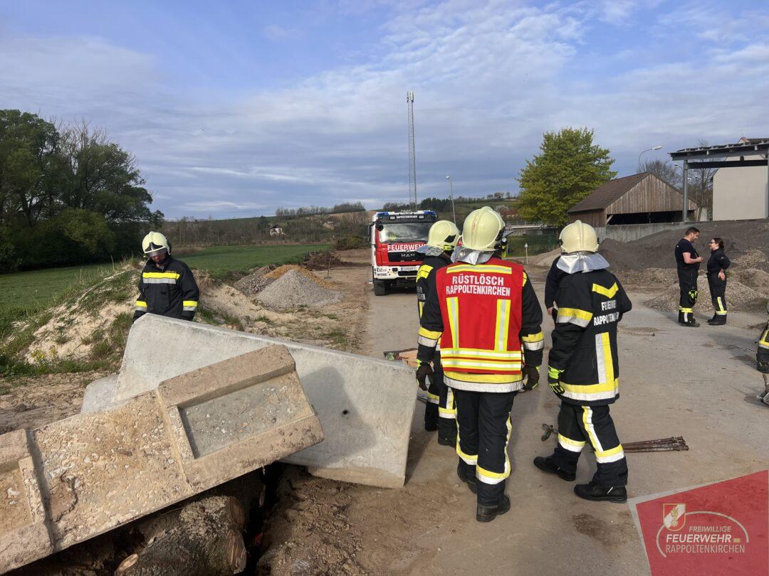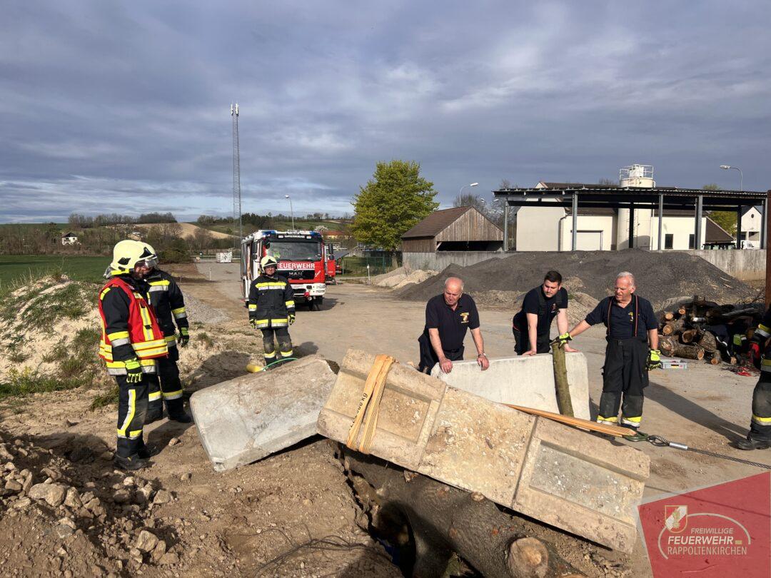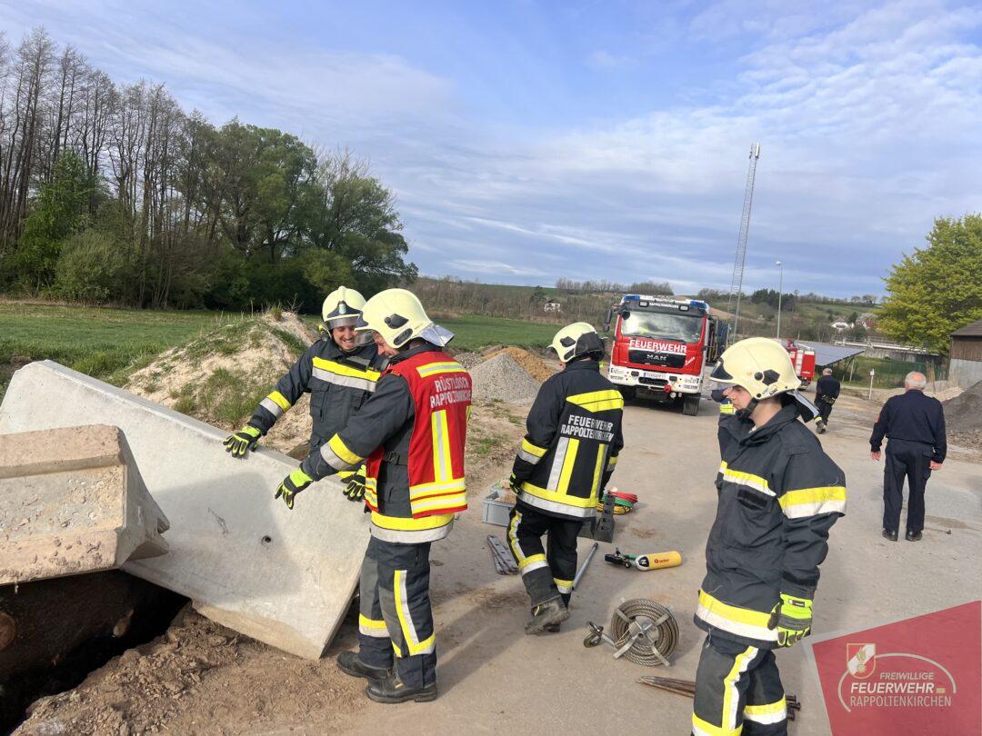 Wir mussten eine verschüttete und teils mit Bäumen und Leitwänden begrabene Person aus einer Künette retten. Mittels des Greifzuges konnte diese herausfordernde Tätigkeit rasch und erfolgreich vollzogen werden.