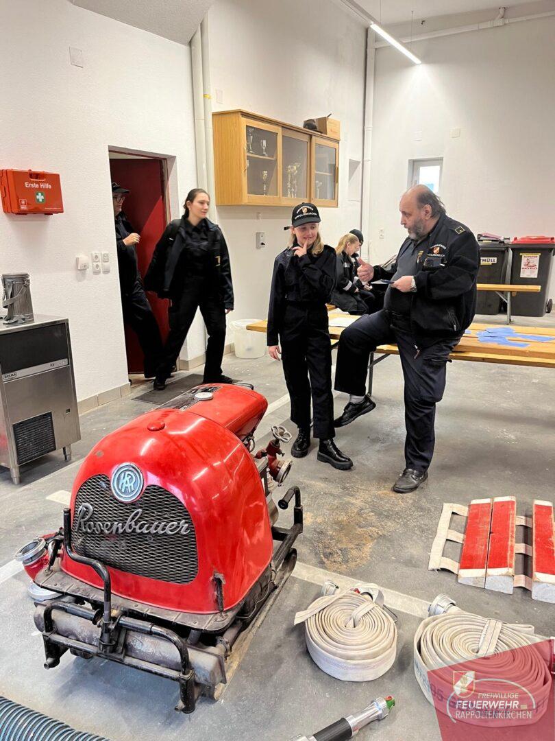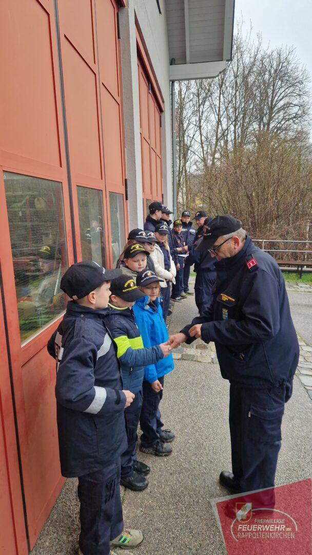 Der Wissenstest umfasste sowohl theoretische, als auch praktische Aufgaben. Neben dem Ausfüllen eines Testblatts mussten die Teilnehmer ihr Wissen in verschiedenen Bereichen unter Beweis stellen. Dazu gehörten das Vorzeigen von Feuerwehrknoten, das Erkennen und Benennen von Geräten, sowie die korrekte Anwendung von Kleinlöschgeräten. Ein weiteres Highlight war das Erkennen von Sirenensignalen anhand ihres Tones.