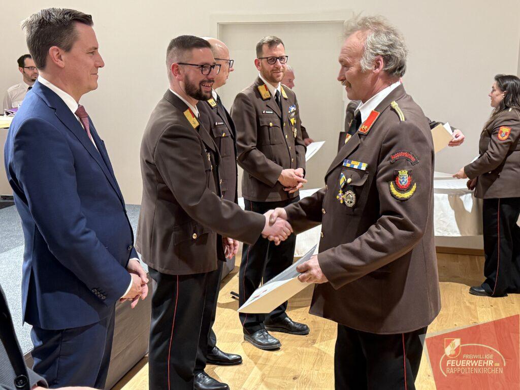 Im Mittelpunkt dieser Veranstaltung stand die Anerkennung und Auszeichnung langjähriger und verdienter Feuerwehrmitglieder. Es ist uns als Freiwillige Feuerwehr Rappoltenkirchen eine besondere Freude, berichten zu dürfen, dass auch drei Mitglieder im Rahmen des Festaktes geehrt wurden.