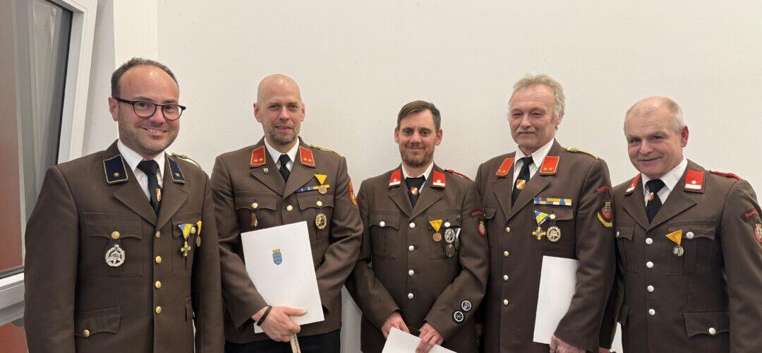 Für ihre 25-jährige bzw. 40-jährige Tätigkeit im Feuerwehrwesen und in Würdigung ihrer langjährigen Verdienste erhielten LM Thomas Ecker und LM Martin Maurer das Ehrenzeichen des Landes Niederösterreich auf dem Gebiet des Feuerwehrwesens.
