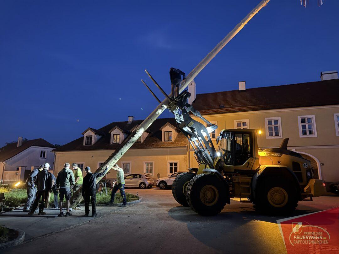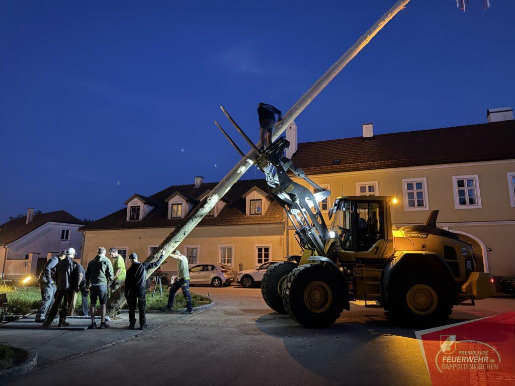 Auch in diesem Jahr wurde in Rappoltenkirchen am 30. April die Tradition des Maibaumaufstellens fortgeführt. Bei bestem Frühlingswetter versammelten sich zahlreiche Bewohnerinnen und Bewohner am Kirchenplatz, um gemeinsam mit der Freiwilligen Feuerwehr Rappoltenkirchen diesen besonderen Brauch zu feiern.