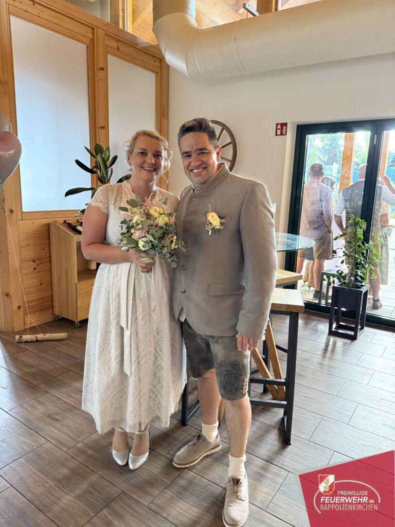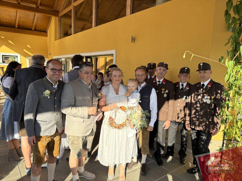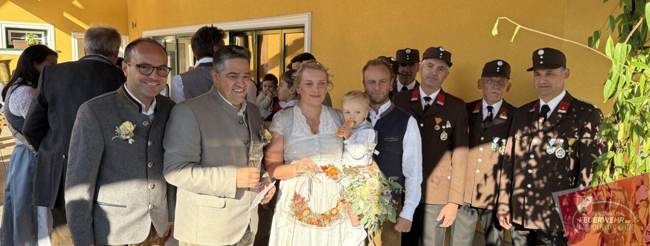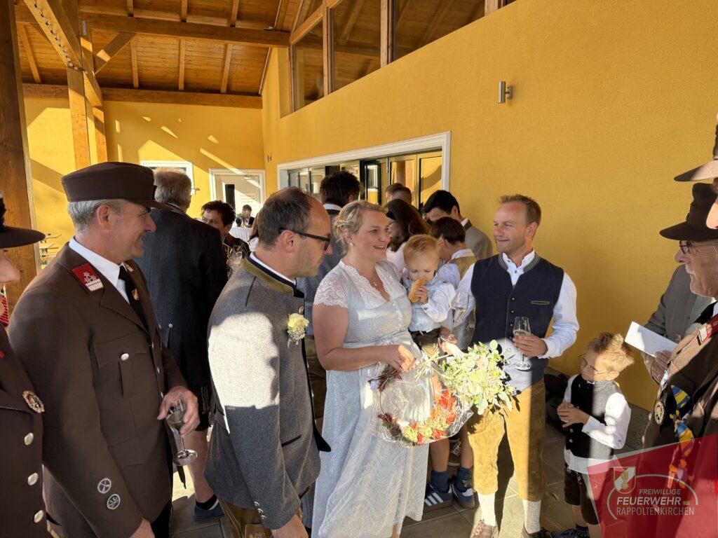 Natürlich ließ es sich die Feuerwehr nicht nehmen, ihrem Kameraden an diesem besonderen Tag zur Seite zu stehen. Mit besten Wünschen und herzlichen Glückwünschen gratulierten wir dem frisch vermählten Ehepaar.