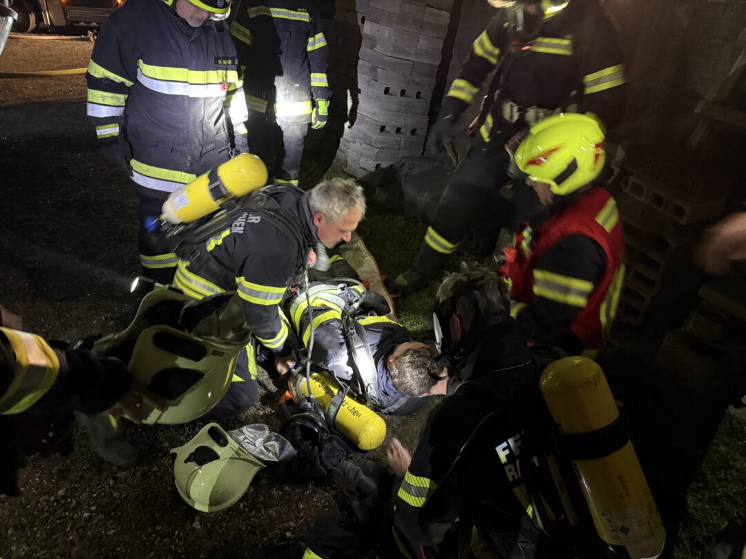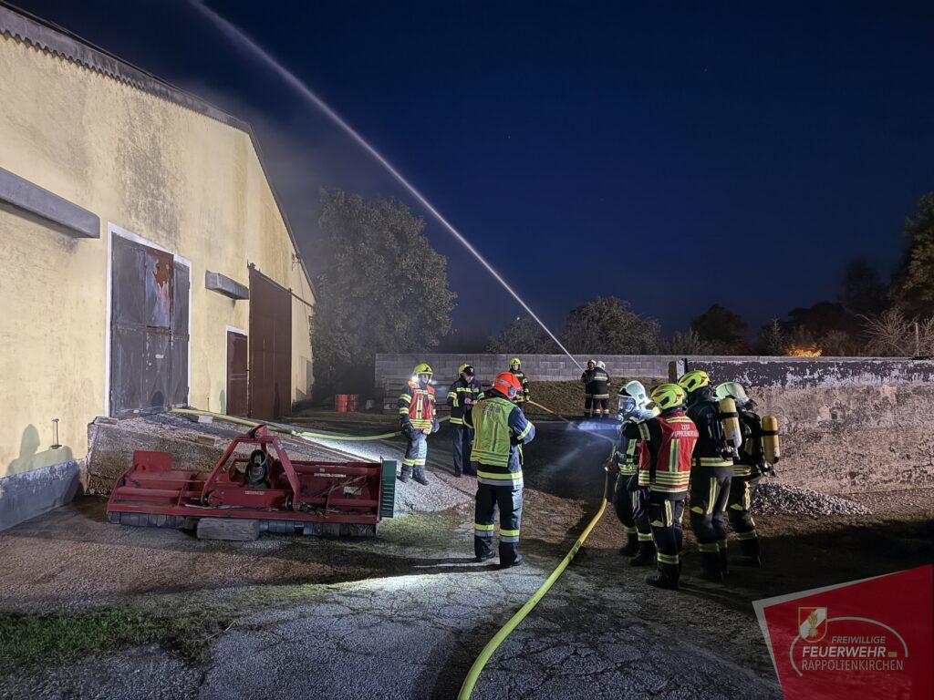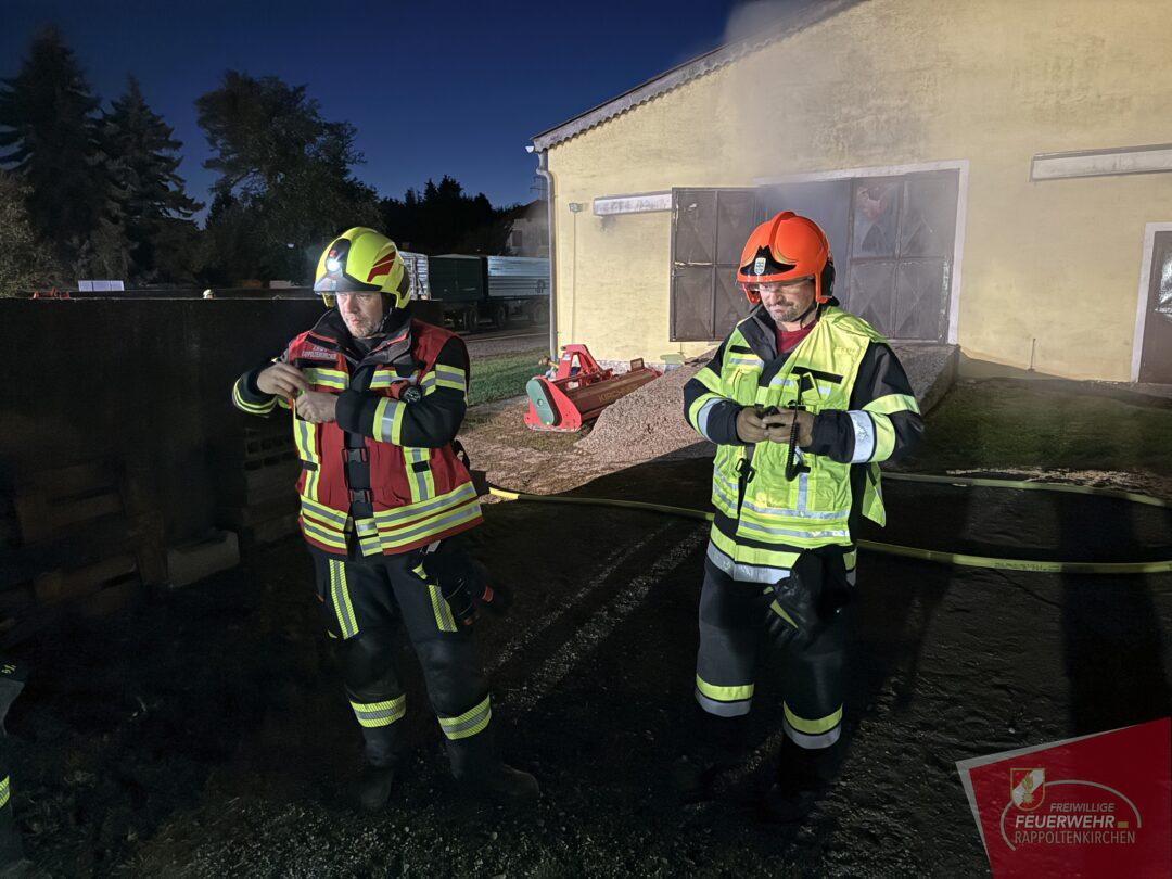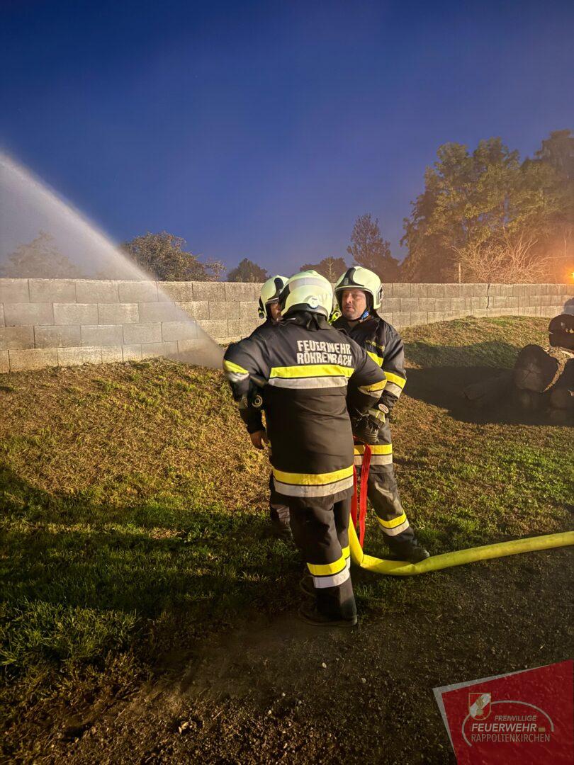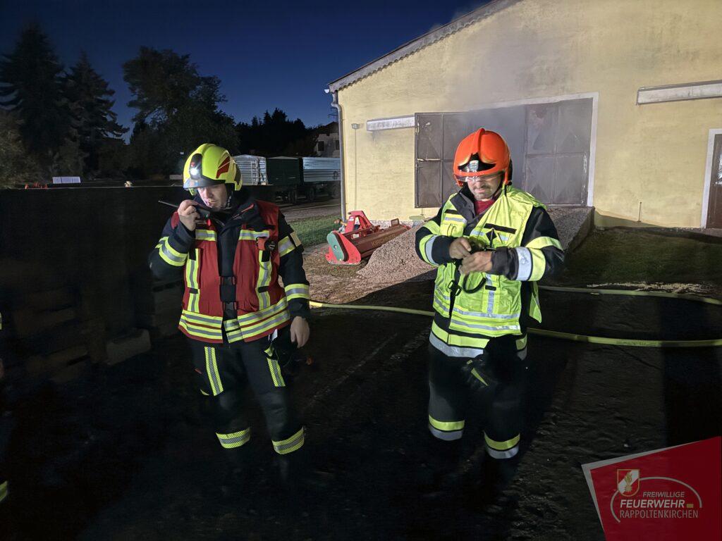 Unter schwerem Atemschutz drang ein Angriffstrupp in das Gebäude ein, um die Person zu lokalisieren und ins Freie zu bringen. Zeitgleich wurde eine Wasserversorgung vom nahegelegenen Bach mittels Tragkraftspritze aufgebaut, um den Löschangriff sicherzustellen. Die FF Rappoltenkirchen errichtete zusätzlich eine Versorgungsleitung vom Hydranten zum Tanklöschfahrzeug und unterstützte ebenfalls mit einem Außenangriffstrupp.