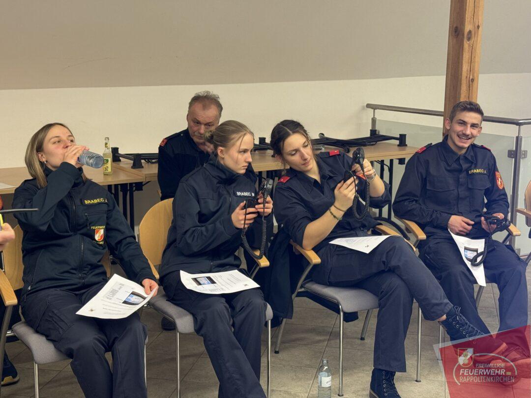 Im ersten Teil der Schulung stand das Thema Funk im Mittelpunkt. In einer ausführlichen theoretischen Einheit wurden die Grundlagen der Funktechnik sowie die korrekte Handhabung der Funkgeräte behandelt. Dabei ging es unter anderem um Funkdisziplin, klare Kommunikation im Einsatz sowie den sicheren Umgang mit den Geräten. Im Anschluss an die Theorie konnten die Teilnehmer das Gelernte direkt in die Praxis umsetzen. In verschiedenen Übungen wurde der richtige Funkverkehr trainiert, um auch im Ernstfall eine reibungslose Verständigung sicherzustellen.