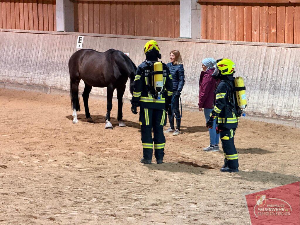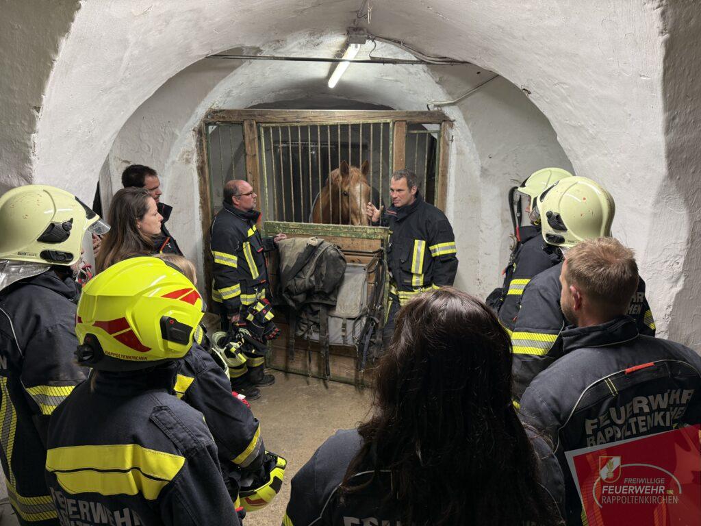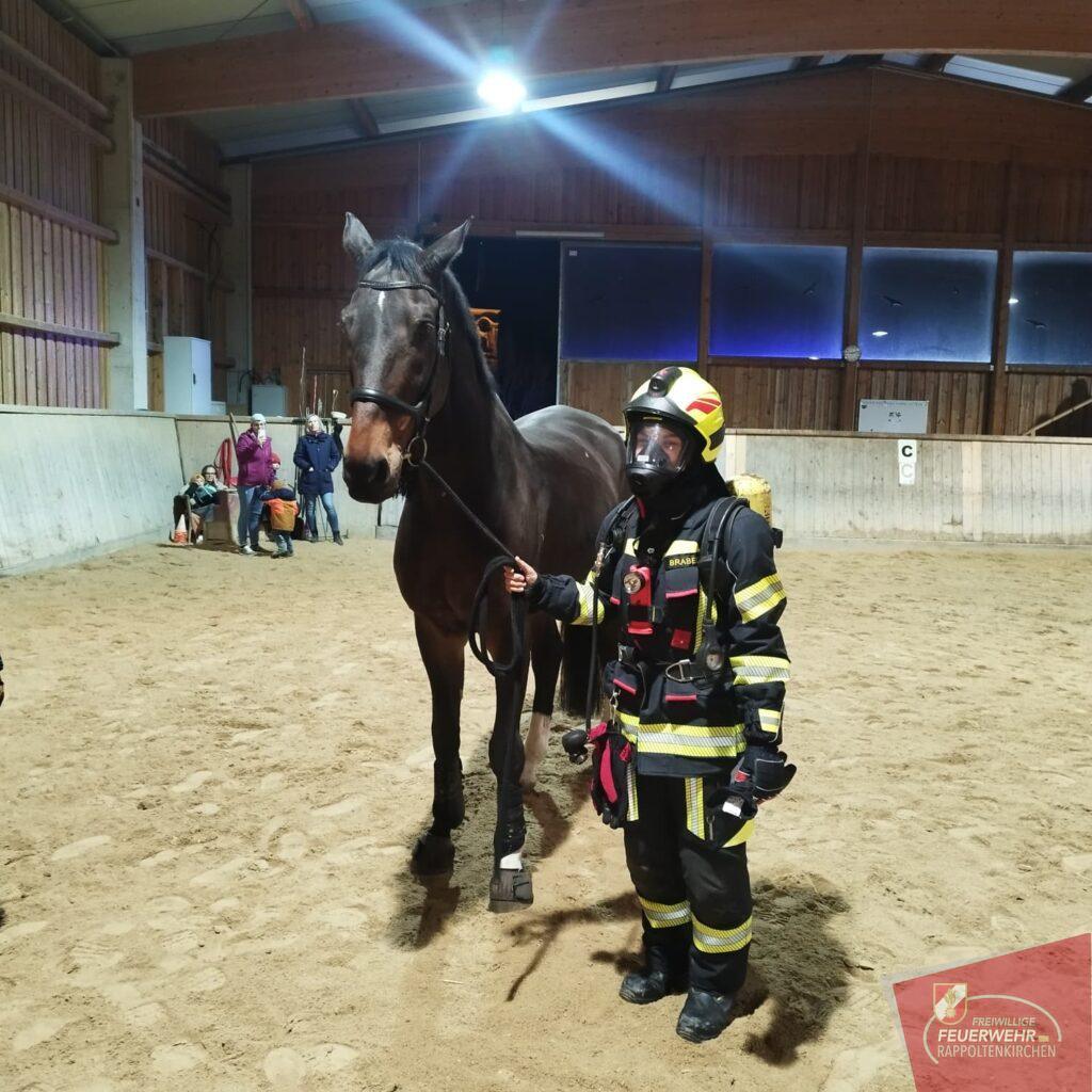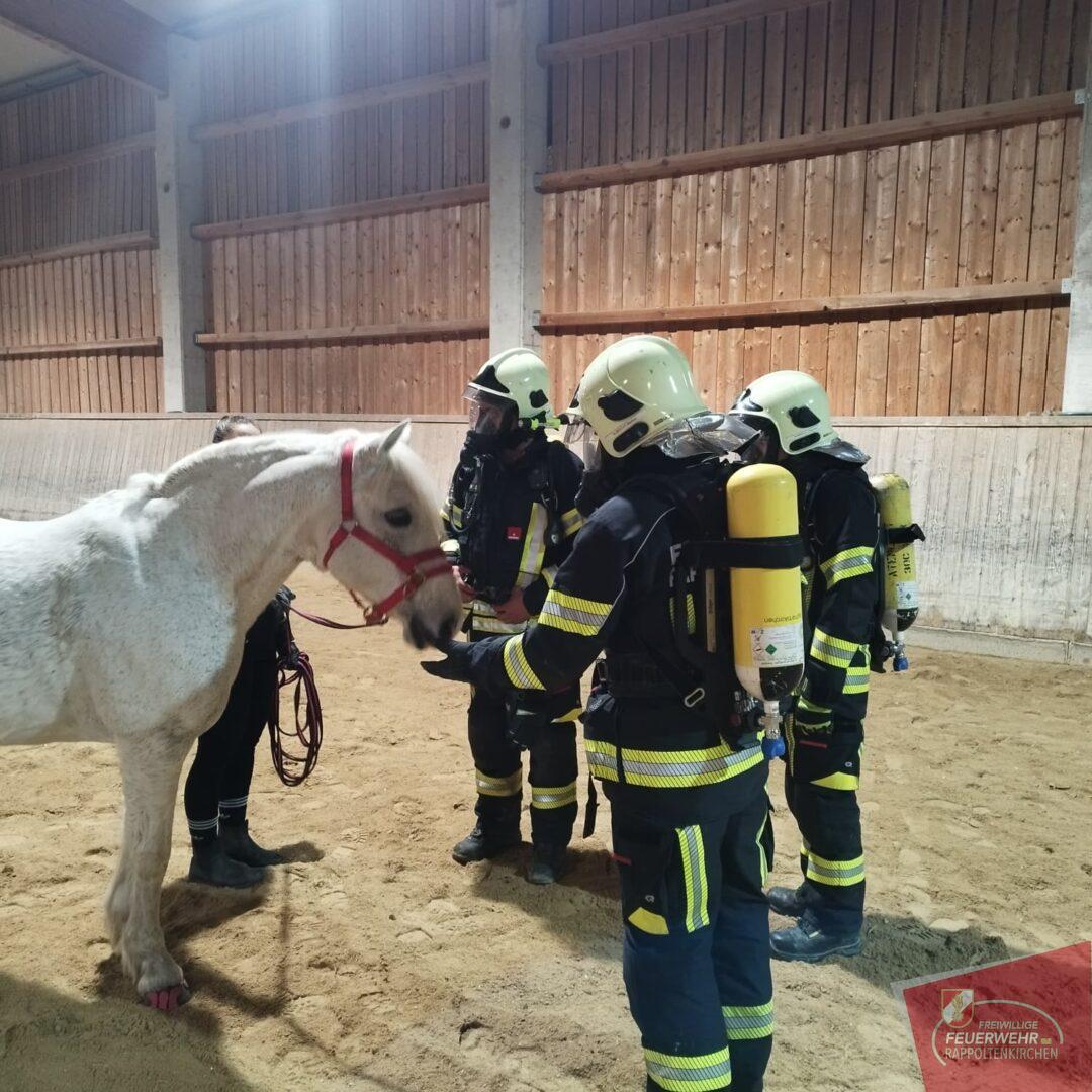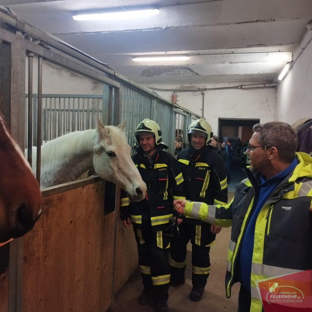 Unterstützt wurde die Übung durch Familie Deckardt und die Einsteller des Hofes, die aktiv mitwirkten und ihre Pferde in die Übung einbezogen.