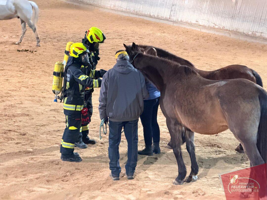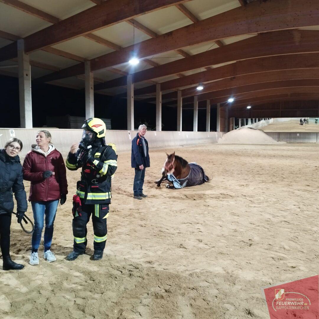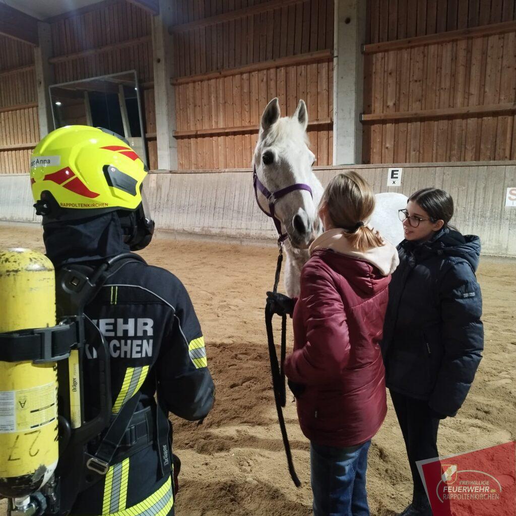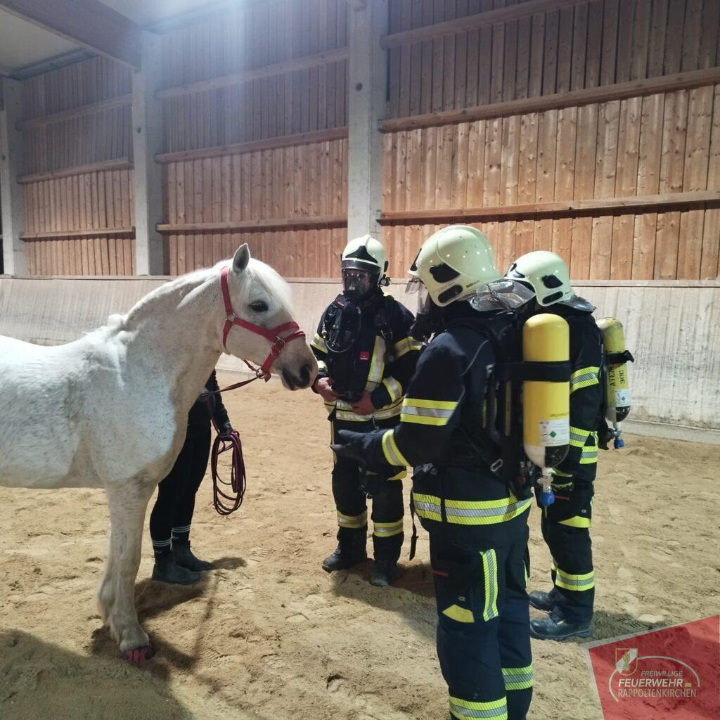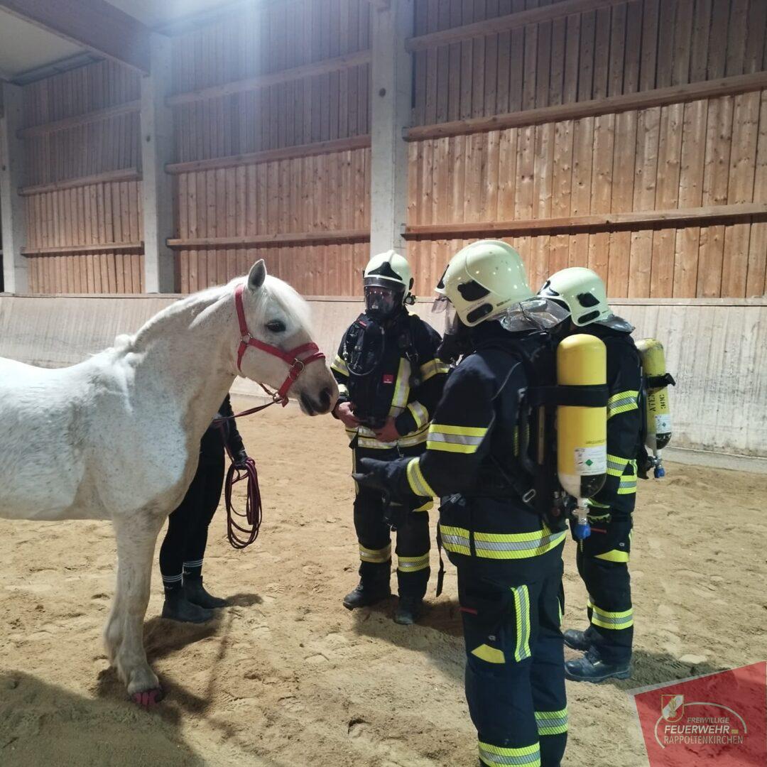 Unterstützt wurde die Übung durch Familie Deckardt und die Einsteller des Hofes, die aktiv mitwirkten und ihre Pferde in die Übung einbezogen.