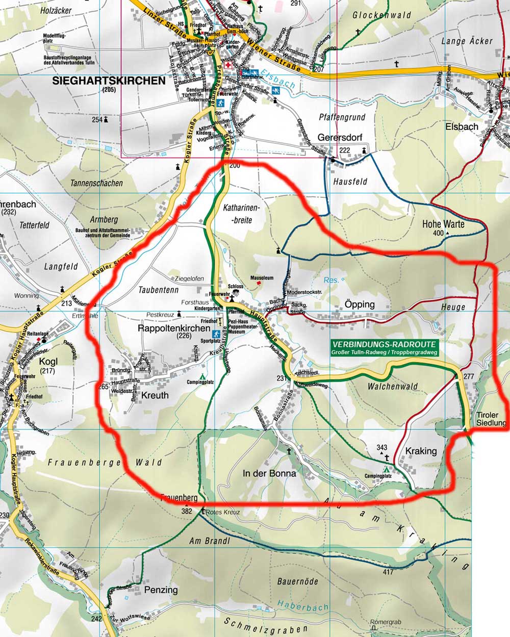 Das Einsatzgebiet unserer Wehr erstreckt sich über die gesamte Katastralgemeinde Rappoltenkirchen, Kreuth, Öpping und Kracking.